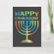 Celebrate Hanukkah with this colorful holiday greeting card that reads, "Happy Hanukkah" over a menorah.