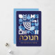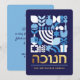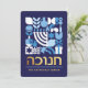 Hanukkah / Chanukah Blue White Modern Geometric Pattern Card with Faux Gold Foil. Menorah, Dreidel, Doughnuts, Stars & Olive oil... They are all here. Hebrew & Jewish Hanukkah Symbols + Space to add your personalised text on the front & reverse. Happy Hanukkah wishes. Hebrew on the front says "Chanukah". This upscale, beautiful, look, is a great way to wish friends, family, and clients, a very Happy Hanukkah/Chanukah. If you want to see a variation of this design please message us or email BestDressedBread@gmail.com.