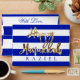 Happy Hanukkah Money Gift Blue and White Striped Pattern in Israeli Flag Colours with Elegant Faux Gold Script Happy Hanukkah Envelope