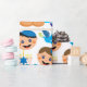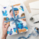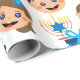 Great pattern for wrapping your Hanukkah gifts. Happy children with presents, doughnuts, doves on white background
