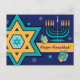 Happy Hanukkah. Star of David, Menorah, Dreidels Holiday Postcard