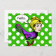 Say hello in style with this pretty green and white polka dot siren postcard. Great for invitations to dinner and greetings from afar. Say hello. Or something else. Whatever works for you.