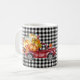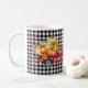 Welcome autumn and all the joys of the season with this charming watercolor design coffee mug that features a whimsical vintage red pickup truck filled to overflowing with orange and yellow pumpkins and autumn leaves scattered in the breeze, all on a cute black and white buffalo check background. This cute coffee mug is the perfect gift for that special someone to show them that they are loved every day of the year, and especially during the season of autumn. Check out all the other items in the “Happy Harvest” collection from Graceful Home Studio.