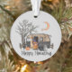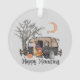 Celebrate spooky nights with Happy Haunting ornament! This fun Halloween ornament features a haunted graveyard scene with a witch and camper van—perfect for Halloween lovers and camping enthusiasts.