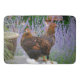 This soft plush floor rug features two golden laced wyandotte hens posing in front of pretty purple russian sage.