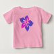 This playful hibiscus adorns the front and back of this toddler tee. There is a larger hibiscus flower with a colourful blend on the front & a smaller solid colour coordinated one on the back. These designs come in several colorways.