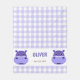 This adorable personalised kids' fleece blanket features a purple, cute and friendly cartoon hippo face with a gingham pattern. Perfect for little animal lovers!