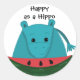 Happy Hippo with Watermelon Slice Classic Round Sticker