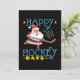 Cute Christmas hockey player design featuring a graphic of Santa playing ice hockey.