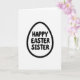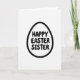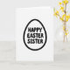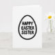 This card features a simple springtime holiday design built around an egg-shaped outline on a bright white background. A thick black border frames the egg, and a tiny repeating pattern of small bunny-like figures is tucked into the outline for a sweet hidden detail 🐰. Centered inside the egg, rounded sans‑serif lettering is stacked across three lines in solid black, reading clearly from top to bottom. The generous spacing around the words keeps the layout airy, like a quiet note left on a kitchen table. The soft curves of the egg and the rounded letter shapes give the message a gentle, affectionate tone, as if it’s meant for someone close. The monochrome palette keeps everything focused on the shape and the words, while the patterned border adds a subtle sense of closeness and care 🐇. Along the thick black outline, the miniature bunny pattern repeats evenly all the way around the egg.