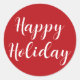 Happy Holiday White Script Red Simple Classic Round Sticker