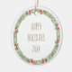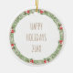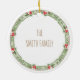 Happy Holidays 20XX Family Name Wreath Berries Ceramic Ornament