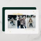 Modern Happy Holidays Gold Foil Typography, 3 photo holiday card. Features, gold foil stars and solid green colour backing with template space for your personal holiday message.