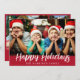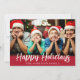 Red 4 photo Christmas greeting card. The front features your photo and "Happy Holidays" written in a stylish white brush script. On the reverse side, add three additional photographs.