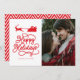Vibrant colored letters, trees, holly and cancy canes in a cheerful message suitable for a non-religious holiday greeting. I especially liked it on the black background which made the design pop.