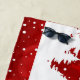 A festive holiday beach towel featuring a snowy forest scene with the Text "Happy Holidays"!