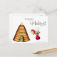 Cute personalised holiday postcard with an illustration of a bee Santa Claus with his bag of presents going to her beehive. Illustrated and designed by Patricia Alvarez.