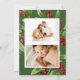 Festive berry botanical, multi-photo holiday card. Happy Holidays in green script. Card features, elegant watercolor frames of greenery and berries with coordinating green colour backing background. Single vertical photo on front and two horizontal photos on back.