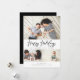Featuring modern brush script in red with 3 of your photos. Comes with a photo on the back as well.