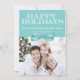 Happy Holidays Blue Bow Chevron Photo Card