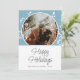 Happy Holidays Blue Foliage Family Photo Holiday Card