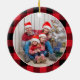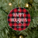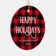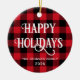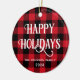 Happy Holidays Buffalo Check Family Photo Ceramic Ornament
