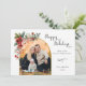 Happy Holidays Calligraphy Arch Floral Photo Holiday Card