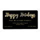 Happy Holidays Chic Black and Gold Script Hand Lettering with Faux Sparkles, Elegant Shipping Labels for the Christmas holiday season.