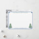 ** Photo credit: Photography [copyright] Storytree Studios, Stanford, CA ** / Classic personalised note card design with space for a whole horizontal photo on the reverse side. The front side features stylised Christmas trees covered in blue and white ginger jar ornaments, and a "Greek Key" border. You can change the dark blue of the border to any other colour you want by entering the design tool ("click to customise further" underneath the text customisation boxes).
