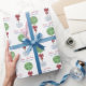 Happy Holidays Christmas Boxwood Topiary Red Bow Wrapping Paper