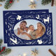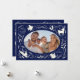 Happy Holidays Christmas Photo Woodland Doodle Holiday Card Christmas Card features your favourite photo surrounded by cute woodland animals and winter floral elements and all tied together with a whimsical coquette bow with the text "Wishing you a happy holiday" in modern typography on a blue background and personalised with your family name. Perfect for family and friends for Christmas and the holidays. Created by Evco Studio www.zazzle.com/store/evcostudio