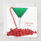 Candy cane on green cocktail glass with ribbons for holiday party.