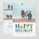 The Happy Holidays Colourful Photo Collage Holiday Card features a fun blue and gold design, with room for one cherished photo on the front and four more photos on the back. Personalise the greeting to send warm holiday wishes to your loved ones in a uniquely colourful way. Make this holiday season memorable with our collection of joyful and customisable cards.
