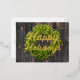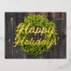 Happy Holidays Country Rustic Pine Wreath Wood Foil Holiday Postcard
