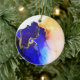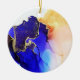 Beautiful vibrant alcohol ink art on an ornament. Decorate this season with an original abstract by international artist Pauline Benjes. Happy Holidays Custom Blue Gold Ceramic Ornament.
