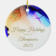 Happy Holidays Custom Blue Gold Ceramic Ornament