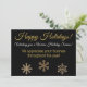 A black and gold snowflakes personalised, Happy Holidays professional holiday greetings business Christmas Card.Say thank you to your customers with this modern professional looking holiday neutral card. You can offer a discount, sale, special promotion or just say thank you and happy holidays. On the back you can add your logo image.