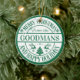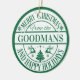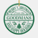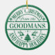 This classic ornament features a fun green and white design that says "Merry Christmas and Happy Holidays". Personalise by adding your family name. Makes a great keepsake or gift that can be passed down for years to come!