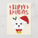 NewParkLane - Christmas Postcard for dog lovers, featuring a cute Maltese cartoon, wearing a Christmas hat, with a Happy Holidays wish in fun, red, script typography.