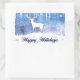 Original watercolor painting by Sandra Gale featuring a white deer silhouette standing majestically among icicles and snow. Especially perfect as an alternative to a Christmas card, concentrating rather, on the magic of the winter holiday season.
