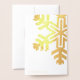 Golden foil image of an elegant decorated Christmas tree on the front of the card. The text Happy Holidays! above the image. The number 20 to the left of the tree, the number 18 to the right of the tree. Both numbers form the celebrated year. You can change the number 18 and make a card for any year of the 21st century. Subtle images of snowflakes inside the card. You can change or delete the template text: Have a cheerful, holly, jolly, and Merry Christmas and a Happy New year too! Let peace, health, and prosperity be with you and yours! With Love, Mary. The golden foil snowflake is partly visible on the back side of this elegant golden foil card. Happy Holidays to you and yours!