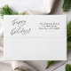 Create your own Christmas card envelopes with minimalist calligraphy script happy holidays and your custom return address.