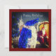 Vibrant colored letters, trees, holly and cancy canes in a cheerful message suitable for a non-religious holiday greeting. I especially liked it on the black background which made the design pop.