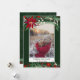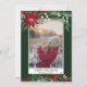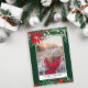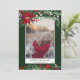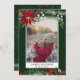 Send your Christmas greetings with this chic and modern green, red, winter Christmas design featuring a pretty hand painted red poinsettia , green branches with white snow, add your photo with a modern geometric frame border on dark green. All the text color is editable.
