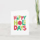 Send merry and bright holiday wishes with this colourful card featuring fun and playful illustrations as part of the word "happy holidays." Inside has a place for personalised greeting and name, but can also be left blank.