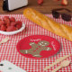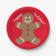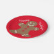 Paper plate with rich red colour, decorated with a sweet gingerbread character and "Happy Holidays" in white.