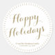Happy Holidays gold script custom family name Classic Round Sticker