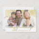 Modern faux gold foil effect script text overlay for personalised full-bleed photo holiday greeting cards.