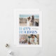This 3-photo holidays card reads Happy Holidays and features simple ombre type in shades of blue on a white background. It has one large photo, and 2 smaller photos are on the front, with an additional photo on the back with space for a personal greeting.