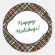 Happy Holidays Greeting on Seasonal Burlap Classic Round Sticker